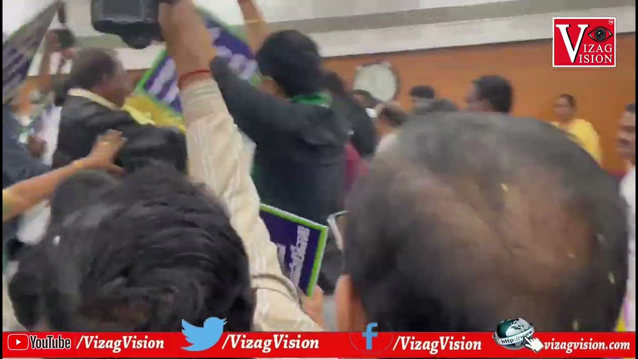 GVMC కౌన్సిల్ సమావేశం లో సభ్యులు కొట్లాట గీతం అంశానిక నుంచి తొలగించాలంటూ వైసీపీ సభ్యులు ఆందోళన Visakhapatnam Vizagvision