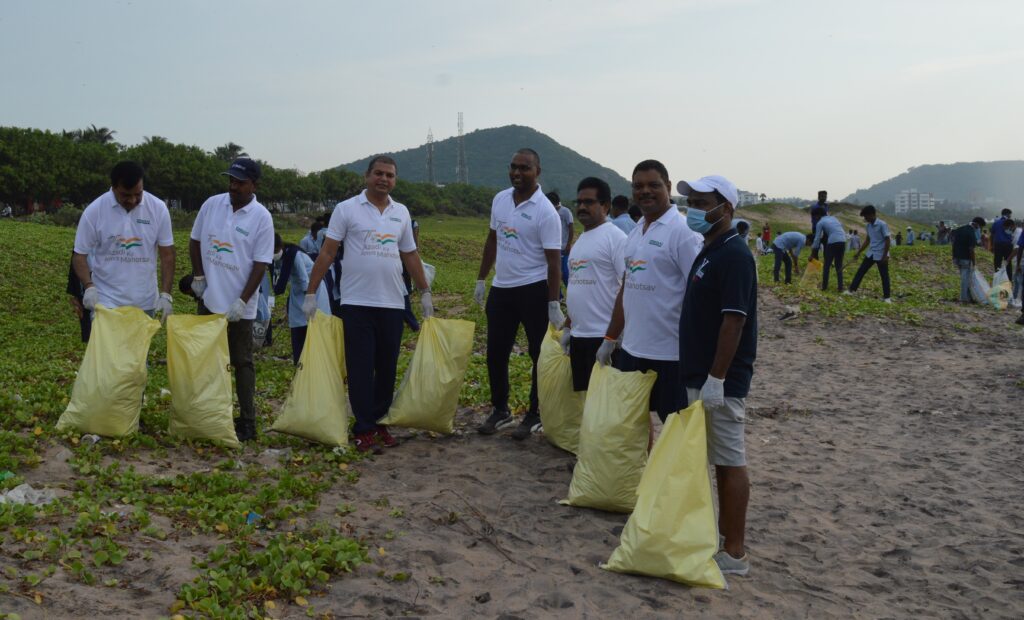 Visakhapatnam: A large number of CREDAI Visakhapatnam members, including its Chairman Sri Bayana Srinivasa Rao, took active part in the “Massive Beach Clean Up” program organized by the GVMC along the Beach Road on Friday.