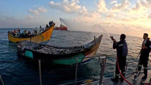 Indian Naval Ship T 38 along with Offshore Support Vessel MV Erin rendered timely assistance to extinguish fire onboard Fishing Vessel S Nookaraju. No casualties were reported. All crew members were transferred to another FV and escorted to Upada village near Kakinada along with the damaged boat.