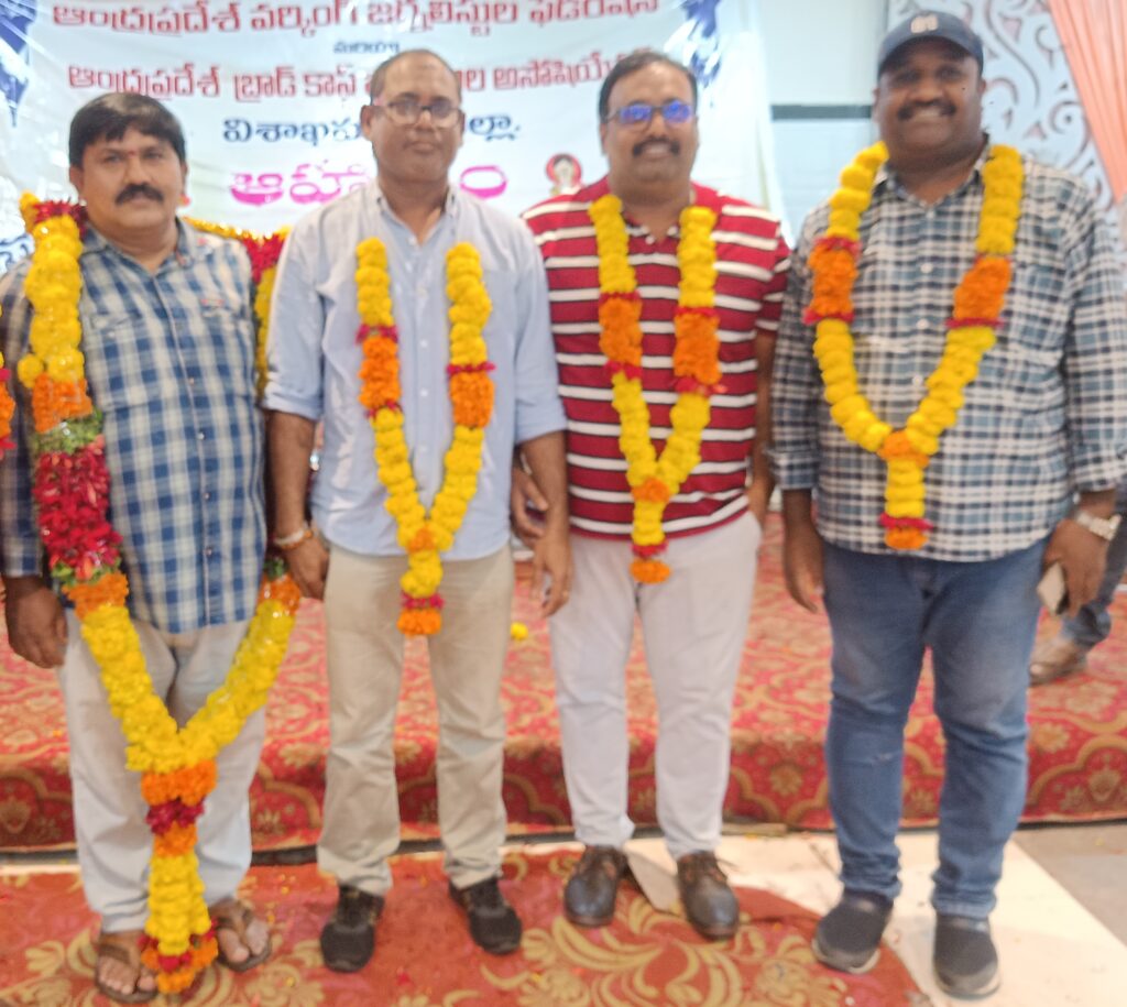ఏపి బ్రాడ్ కాస్ట్ విశాఖ అర్బన్ నూతన కార్యవర్గం సమావేశం అనంతరం ఏపీ బ్రాడ్ కాస్ట్ జర్నలిస్టుల అసోసియేషన్ విశాఖ అర్బన్ యూనిట్ నూతన కార్యవర్గాన్ని ఎన్నుకోవడం జరిగింది. తొలుత జాతీయ జర్నలిస్టుల సంఘం కార్యదర్శి (ఎన్నికల అధికారి) గంట్ల శ్రీనుబాబు నామినేషన్లు స్వీకరించారు. వాటిని పరిశీలించిన అనంతరం నూతన కార్యవర్గాన్ని శ్రీనుబాబు నారాయణ్ లు ప్రకటించడం జరిగింది. ఆర్బన్ యూనిట్ బ్రాడ్ కాస్ట్ అసోసియేషన్ అధ్యక్షులుగా ఇరోతి ఈశ్వరరావు (మెట్రో టీవి), డిప్యూటీ జనరల్ సెక్రటరీగా పి.నర్సింగరావు (టి.వి.9), కార్యదర్శిగా కె.మధన్ (విన్యూస్) ఉపాధ్యక్షులుగా అనురాధ (హెచ్ ఎమ్ టివి), నాయుడు (సాక్షి), కె.బాబూరావు (టి.వి 9), ఆర్గనైజింగ్ సెక్రటరీలుగా పి.భాస్కర్ (ఈటివి), మళ్ల దేవత్రినాధ్ (వైజాగ్ విజన్), నాయుడు (విడిజిటల్), కోశాధికారిగా సిహెచ్ రాజశేఖర్ (ఏబిఎన్), సంయుక్త కోశాధికారిగా ఏ.సురేష్ (విడిజిటల్), జాయింట్ సెక్రటరీలుగా ఏ.శేషు (టివి-5), కోరాడ శశిభూషణరావు (సాక్షి) బి.రాజు (వీడియో జర్నలిస్టు), బి.రాము (విటివి), కార్యవర్గ సభ్యులుగా జిఆర్ ఎస్ రమేష్, ఎన్.నెలరాజు, , గోపీనాధ్, బి.అప్పలనాయుడు తదితరులను ఎన్నుకోవడం జరిగింది.