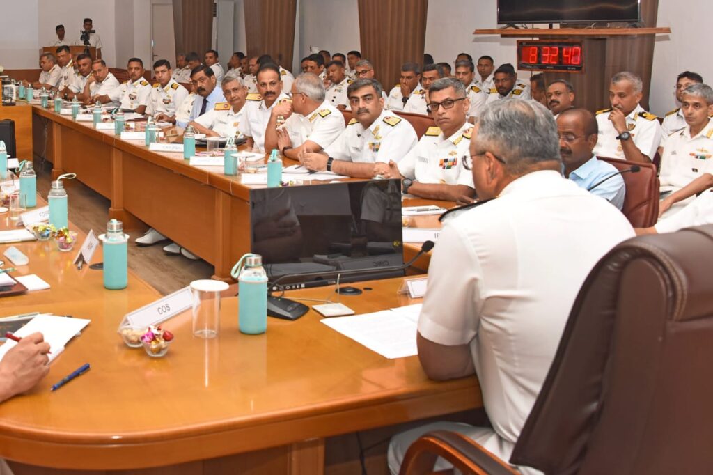 The Half-Yearly Command Staff Meeting for Eastern Naval Command was chaired by Vice Admiral Rajesh Pendharkar, Flag Officer Commanding-in-Chief (FOCinC), ENC, at Visakhapatnam. The meeting was attended by senior officers of the Command and focused on reviewing the progress and discussing ways to enhance operational efficiency and effectiveness.