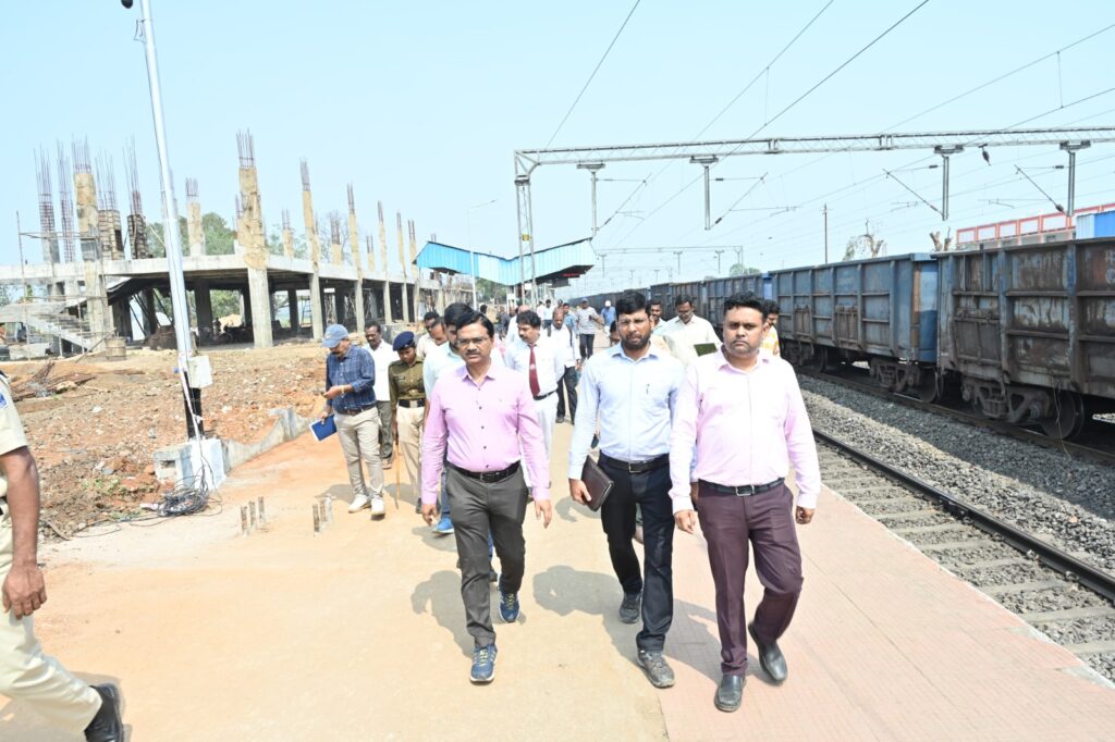 DRM conducted detailed inspection at Bobbil Railway station to review the progress of Amrit station works including inspection of the 12 metres wide Foot Over Bridges, inspection of critical areas and yards, emphasizing on operational enhancements and developmental plans of the station building. Shri Manoj Kumar Sahoo inspected the Komatipalli station, Traction Sub Station and provision of additional passenger amenities at station.