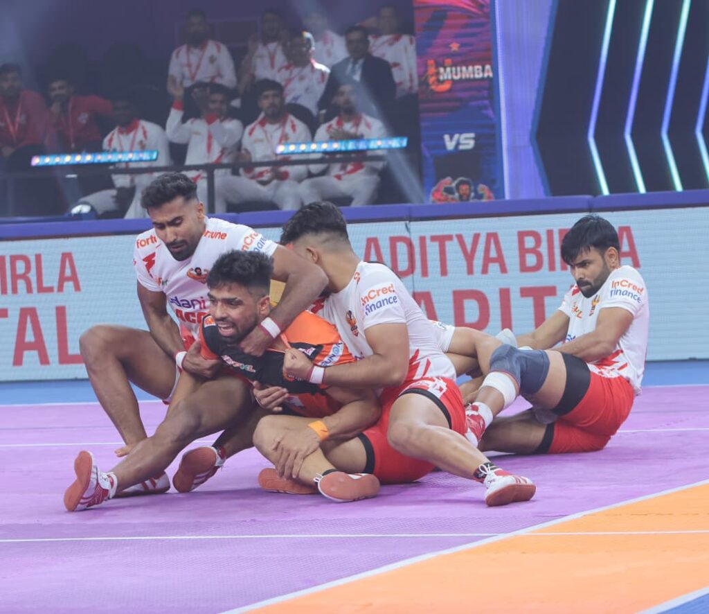 U Mumba stayed within striking distance courtesy to their defensive work and eventually got their noses in front with a one-point lead after a couple of Super Tackles. They continued that momentum with Anil Mohan registering some crucial points, while Ajit Chouhan contributed on the defensive end. Parvesh Bhainswal also registered his 350th tackle in the PKL, keeping his team’s lead intact.