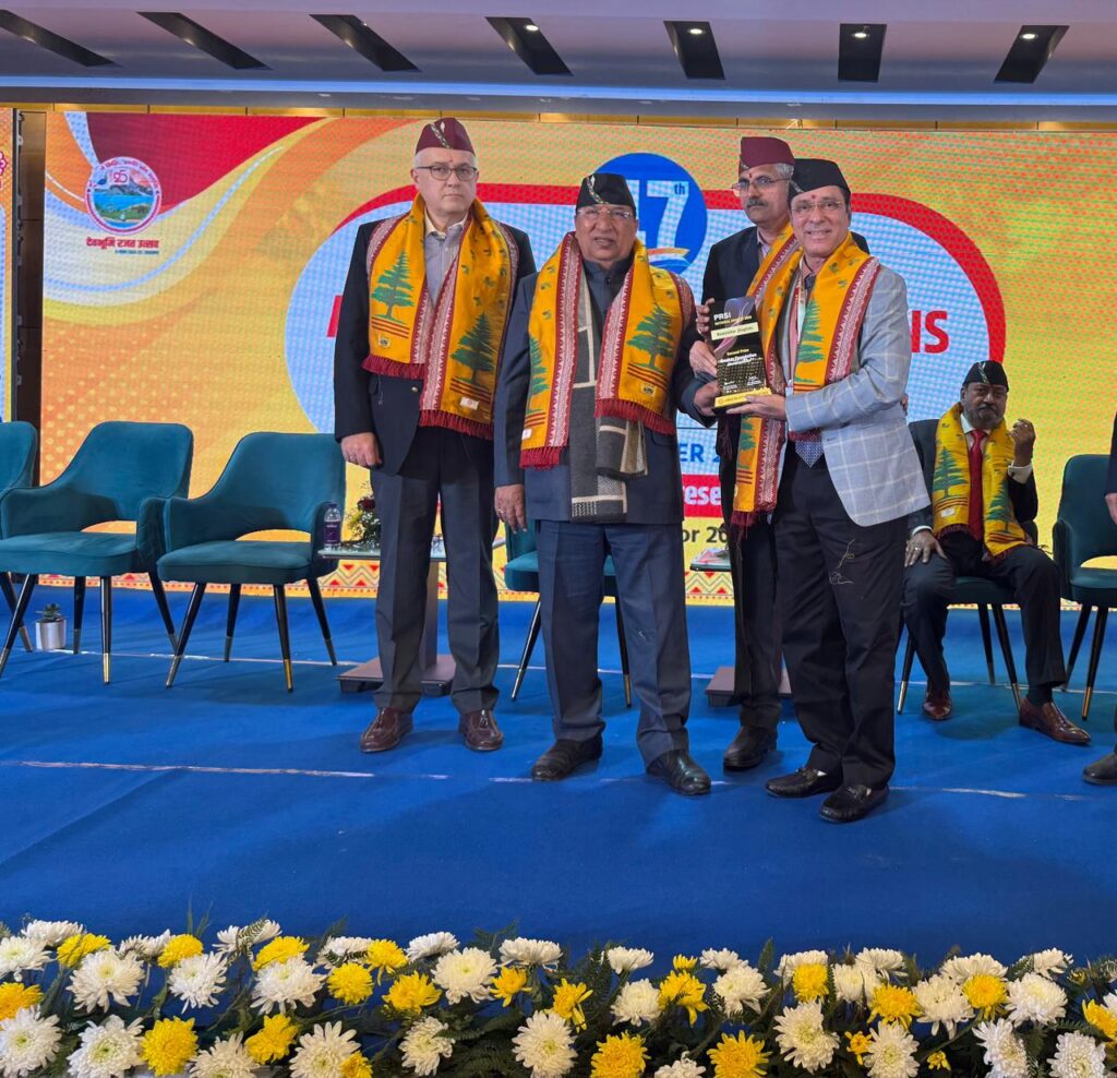 ఫోటో శీర్షిక: 1) ఉత్తరాఖండ్ ముఖ్యమంత్రి పుష్కర్ సింగ్ ధామి వార్తాలేఖలోని విషయాలను పరిశీలిస్తున్న దృశ్యం. 2) డెహ్రాడూన్లో విజనరీ ఇన్సైట్స్ ఎడిటర్ కె. బంగర్ రాజుకు ఎంపీ బన్సల్ అవార్డును అందజేసిన దృశ్యం.